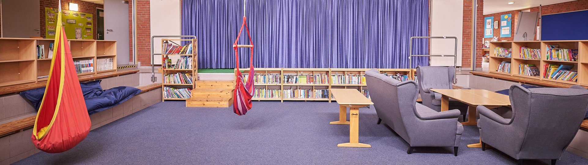 Unsere offene Ganztagsschule bietet mit modernen Klassenräumen, einem Musikraum, einer schuleigenen Turnhalle, einer Aula für Theateraufführungen und einer Schulbücherei alles, was man von einem attraktiven Bildungsstandort erwartet. Ein großzügig angelegter Schulhof mit Klettergerüsten, Schulwald und Ballspielgelände lädt zum Entspannen und Toben während der Pausen ein.