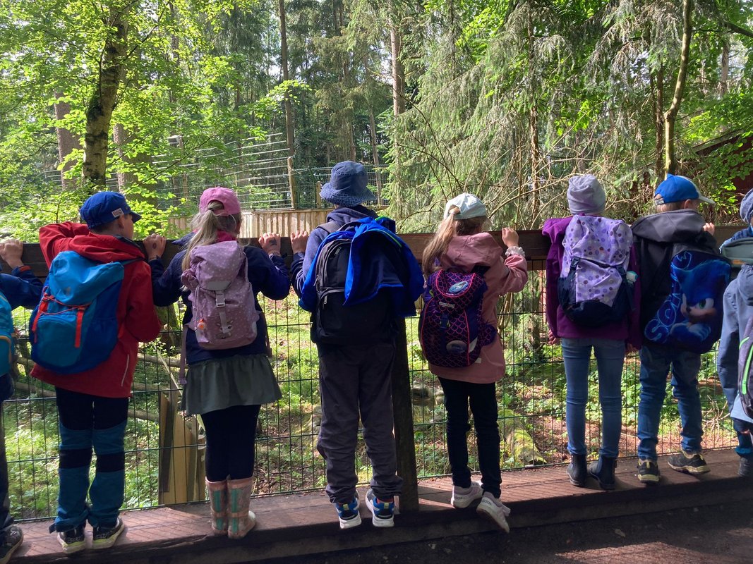 Nach einem gemeinsamen Frühstück wurden wir schon von unserem Guide empfangen und in den einzelnen Jahrgangsgruppen durch den Wildpark geführt. Jede Klasse beschäftigte sich vorher bereits im Sachunterricht mit einem Tier, welches wir uns im Park genauer anschauten. Auf dem Weg konnten wir zudem noch weitere Tiere sehen, füttern oder auch streicheln.