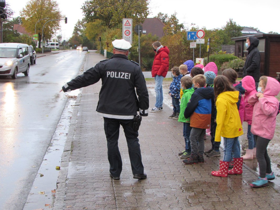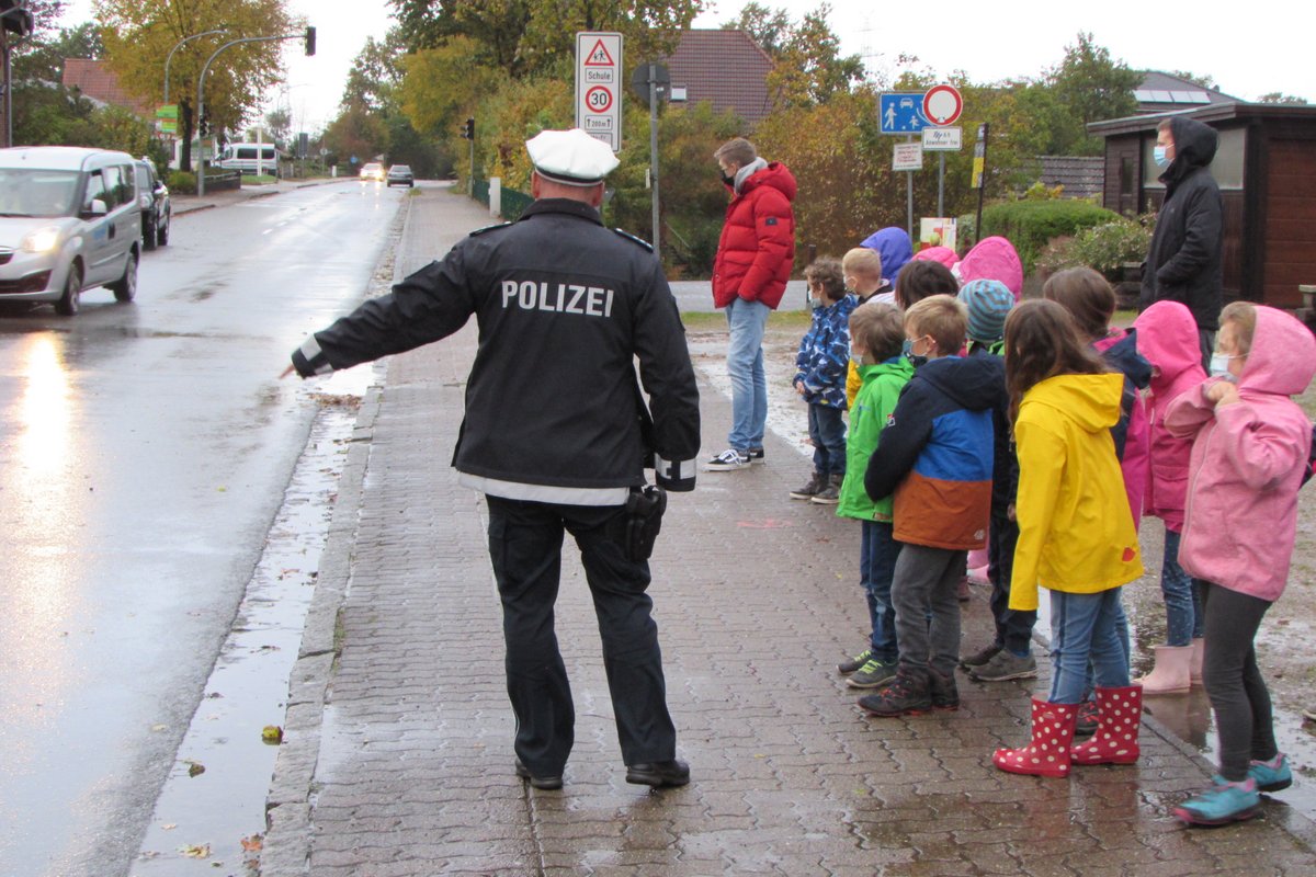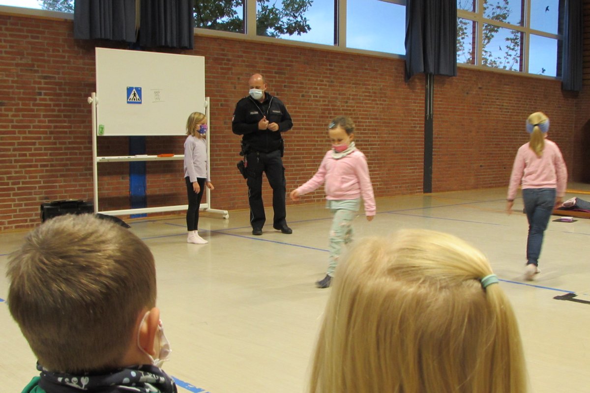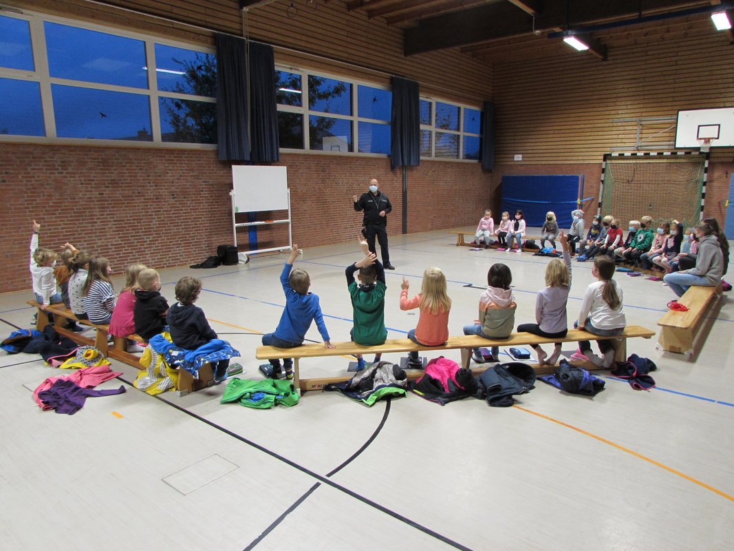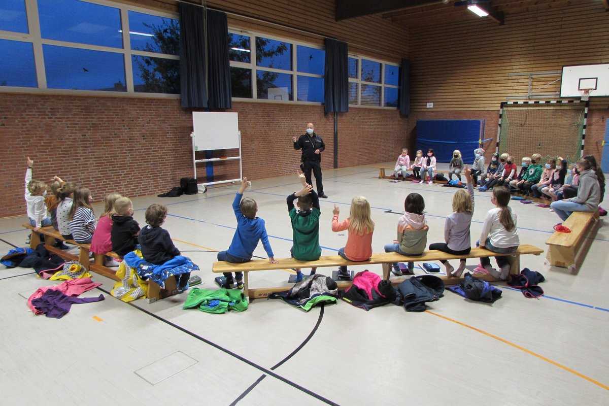 Die Koalas und Füchse bekamen Besuch von der Polizei und alle fragten sich, warum? Hat etwa jemand einen Naschiraub begangen oder die Hausaufgaben nicht gemacht? Nein, der Polizist hat die Koalas und Füchse besucht, um zu sehen, wie gut sich alle im Straßenverkehr auskennen. Gemeinsam brachten die Erstklässler den Polizisten ordentlich zum Staunen. Das richtige Verhalten an der Ampel und beim Überqueren der Straße war überhaupt kein Problem und was die Kinder alles schon über die Polizei wussten, unglaublich! Muss man sich anschnallen im Auto? Braucht man beim Fahrradfahren einen Helm? Was ist ein Zebrastreifen? Keine Frage vom Polizisten blieb unbeantwortet. Bei einer Sache waren jedoch alle überrascht. Das wichtigste, was ein Polizist braucht, sind nämlich nicht die Pistole, die Taschenlampe oder die Handschellen, sondern Stift und Notizblock, um sich alles zu notieren. An diesem Tag musste der Polizist aber keine Verstöße notieren. Er schrieb in sein Notizbuch: „Die Koalas und die Füchse sind bereit für den Straßenverkehr, toll gemacht!“