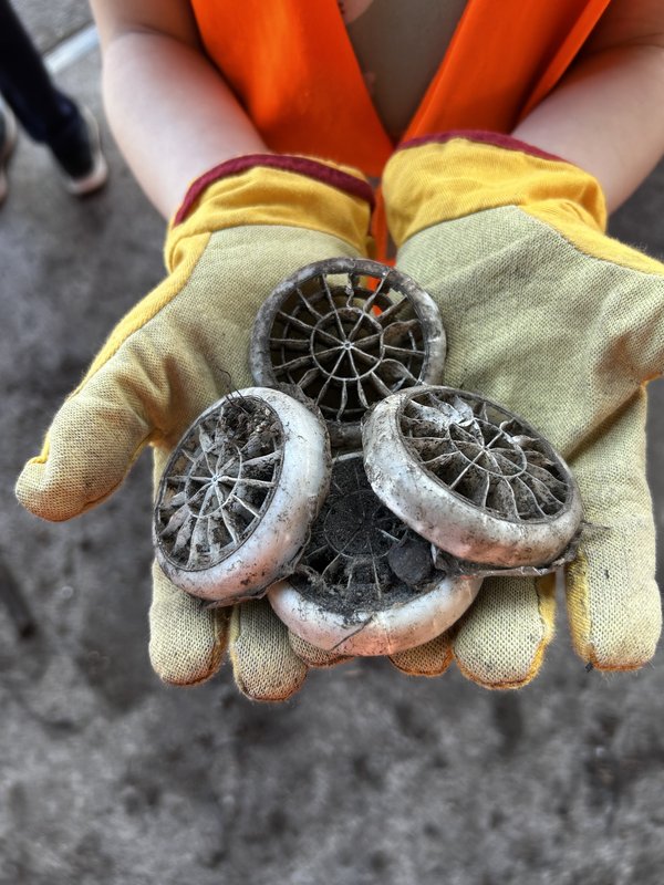 Nach einem kurzen Informationsfilm folgte ein Rundgang auf dem Gelände. Die mit Warnwesten und Arbeitshandschuhen ausgestatteten Kinder bestaunten die riesigen Hallen und die großen Fahrzeuge, die dort im Einsatz waren. Ihnen wurde der Weg des angelieferten Biomülls bis hin zum fertigen Kompost anschaulich erklärt. Eifrig suchten die Kinder nach Dingen, die nicht in den Biomüll gehören. Schnell füllten sich die bereitgestellten Eimer mit Plastiktüten und überraschenden Gegen-ständen wie einer Zahnbürste oder einem Schnuller. Viel Spaß machte es auch, die Hände tief in den warmen Kompost zu stecken. Zum Abschluss durften die Kinder noch im AWR-eigenen Garten toben.