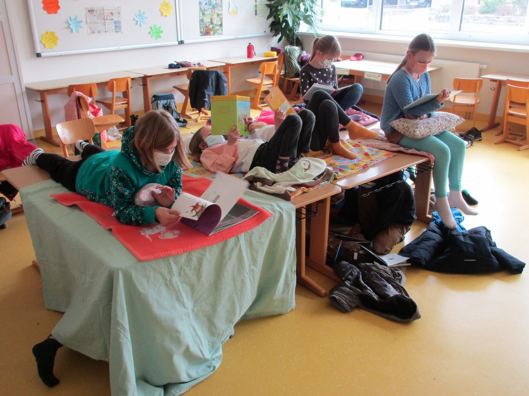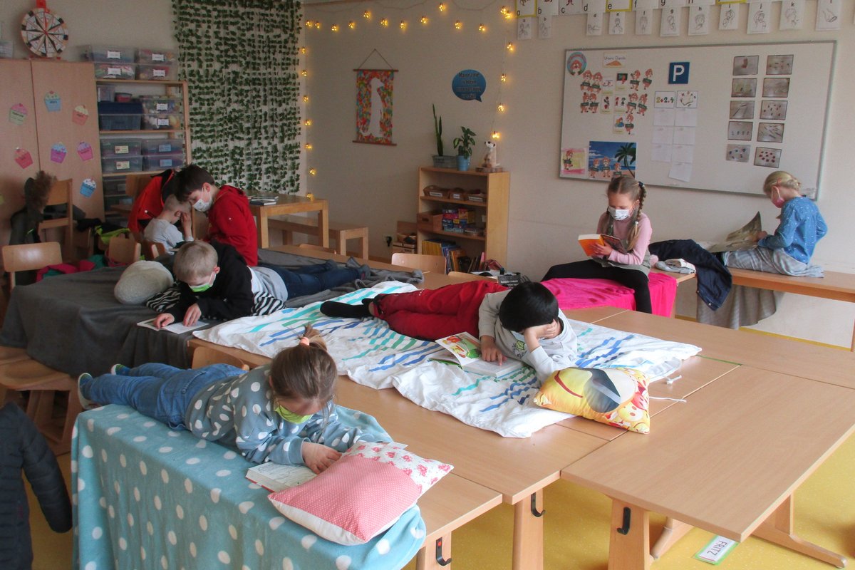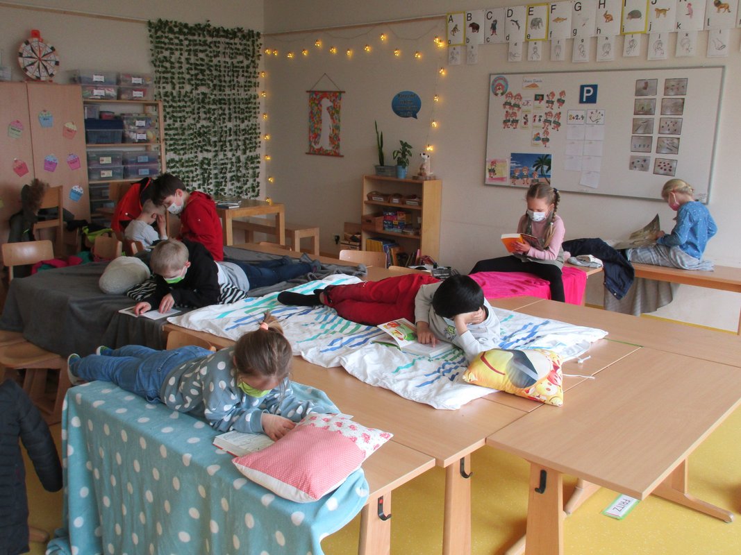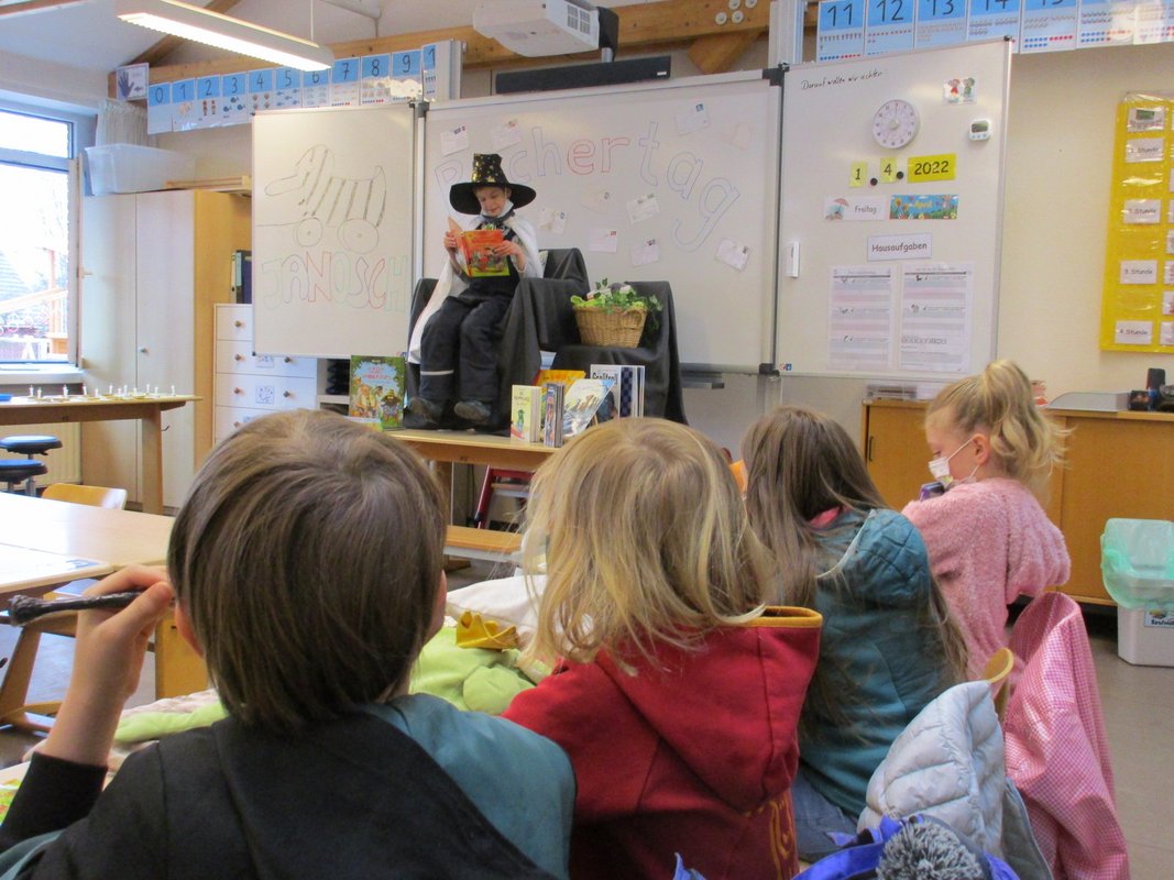 Der letzte Tag vor den Osterferien war ein besonderer Tag an der Grundschule Borgstedt. Das konnte man daran erkennen, dass viele Kinder mit Kuscheltieren, Kuscheldecken und Kissen in die Schule kamen. Alle wollten es sich so richtig schön gemütlich machen, denn an diesem Tag drehte sich alles um Bücher. Einige Kinder kamen sogar als ihre Lieblingsbuchfigur verkleidet. In jeder Klassenstufe stand an diesem Tag eine bestimmte Autorin oder Autor im Mittelpunkt. Neben all den spannenden Aufgaben wurde natürlich viel gelesen und in Büchern gestöbert. Wer wollte, konnte seinen Mitschülerinnen und Mitschülern auch eine Leseprobe aus seinem Lieblingsbuch vortragen. Viele spannende Einblicke in eine Vielzahl von Büchern konnten so an diesem Tag gewonnen werden und der ein oder andere hat auf diesem Weg seinen Lesestoff für die Osterferien gefunden. Viel Spaß weiterhin beim Schmökern und Eintauchen in die fantastische Welt der Bücher!