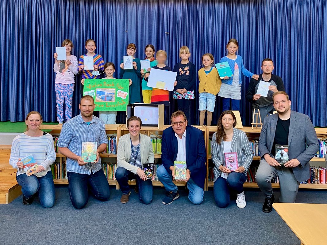 Abenteuer bestehen im Hundert-Morgen-Wald, in der Villa Kunterbunt oder in Hogwarts – Bücher ermöglichen das Eintauchen in fremde Welten und das Erleben von Außergewöhnlichem aus der Perspektive unzähliger Heldinnen und Helden. In Kooperation mit Amazon und der Stiftung Lesen kann genau dieses Eintauchen in die fantastische Welt der Bücher nun in unserem neuen Leseclub stattfinden. Die Belegschaft des Amazon Verteilzentrums in Borgstedt hatte dafür einen internen Wettbewerb der „Amazon Reads“-Kampagne gewonnen und konnte dadurch unsere Schule mit 6.000 € bei der Einrichtung eines Leseclubs unterstützen. Am Montag war es nun endlich so weit: Der in unsere Schulbücherei integrierte Leseclub konnte eröffnet werden. Dazu stellten Kinder eigene Comics vor und erzählten frei ein Märchen nach, was von selbstgestalteten Bildkarten begleitetet wurde. Alle Anwesenden, insbesondere die Vertreter von Amazon sowie des Schulverbands waren von so viel Kreativität begeistert. Zum Abschluss bedankten sich die Kinder im Namen der gesamten Schule mit einem Plakat bei der Belegschaft von Amazon für diese fantastische Unterstützung!