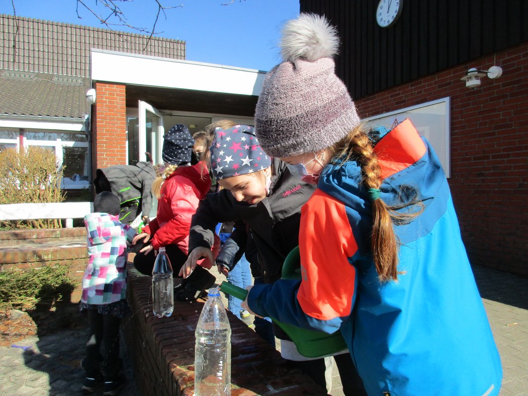 Der Forschertag hielt Einzug in der Grundschule Borgstedt und auf alle Kinder warteten an diesem Tag viele spannende Experimente. Alles drehte sich dabei um die vier Elemente Luft, Wasser, Erde, Feuer. Die Erstklässler erfuhren, dass Luft sogar versunkene Schätze aus den Tiefen des Ozeans heben kann und sie beim Laufen mit einem Fallschirm viel Kraft hat. Das Element Erde und die Frage, wie viel Wasser welcher Boden speichern kann, zog die Zweitklässler in ihren Bann. Bei den Drittklässlern wurde es nass, denn hier wurde rund um das Thema Wasser geforscht. Bei den Viertklässlern ging es heiß er. Aber zum Glück löste keines der Experimente zum Element Feuer die Rauchmelder aus. Auf so viele kleine Forscherinnen und Forscher wäre Albert Einstein bestimmt stolz gewesen und vor lauter Freude bei so viel Wissbegierde hätten ihm bestimmt die Haare zu Berge gestanden!