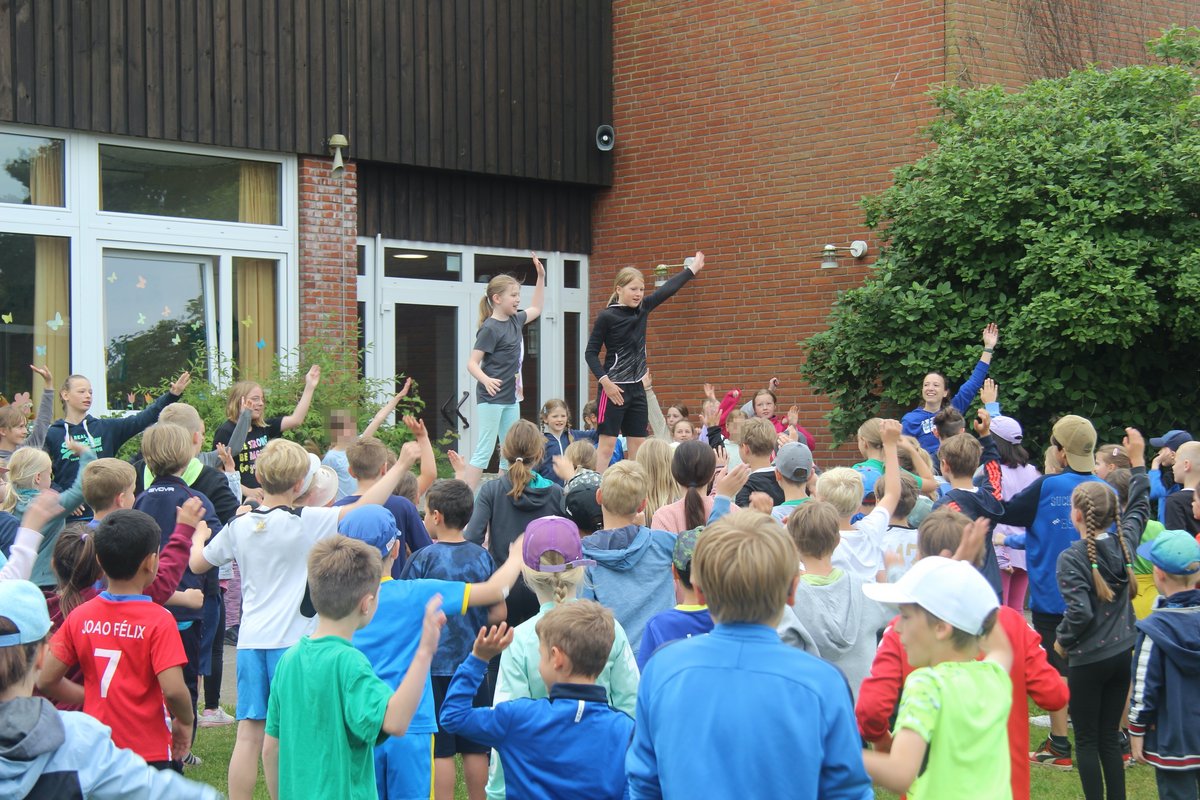 Laufen, springen, werfen - ein Klacks für die Kinder aus Borgstedt und Umgebung! Schon von weiter Entfernung konnte man die anfeuernden Rufe der Teams vernehmen. Nach einem gemeinsamen Abschluss ging es am Ende des Schultags glücklich und erschöpft zurück in die Klassenräume. Viele, viele helfende Hände aus der Eltern- und Großelternschaft haben dem Schulteam an diesem Tag tatkräftig unter die Arme gegriffen und den Kindern diesen tollen Tag ermöglicht. Wir freuen uns schon auf das nächste Jahr!