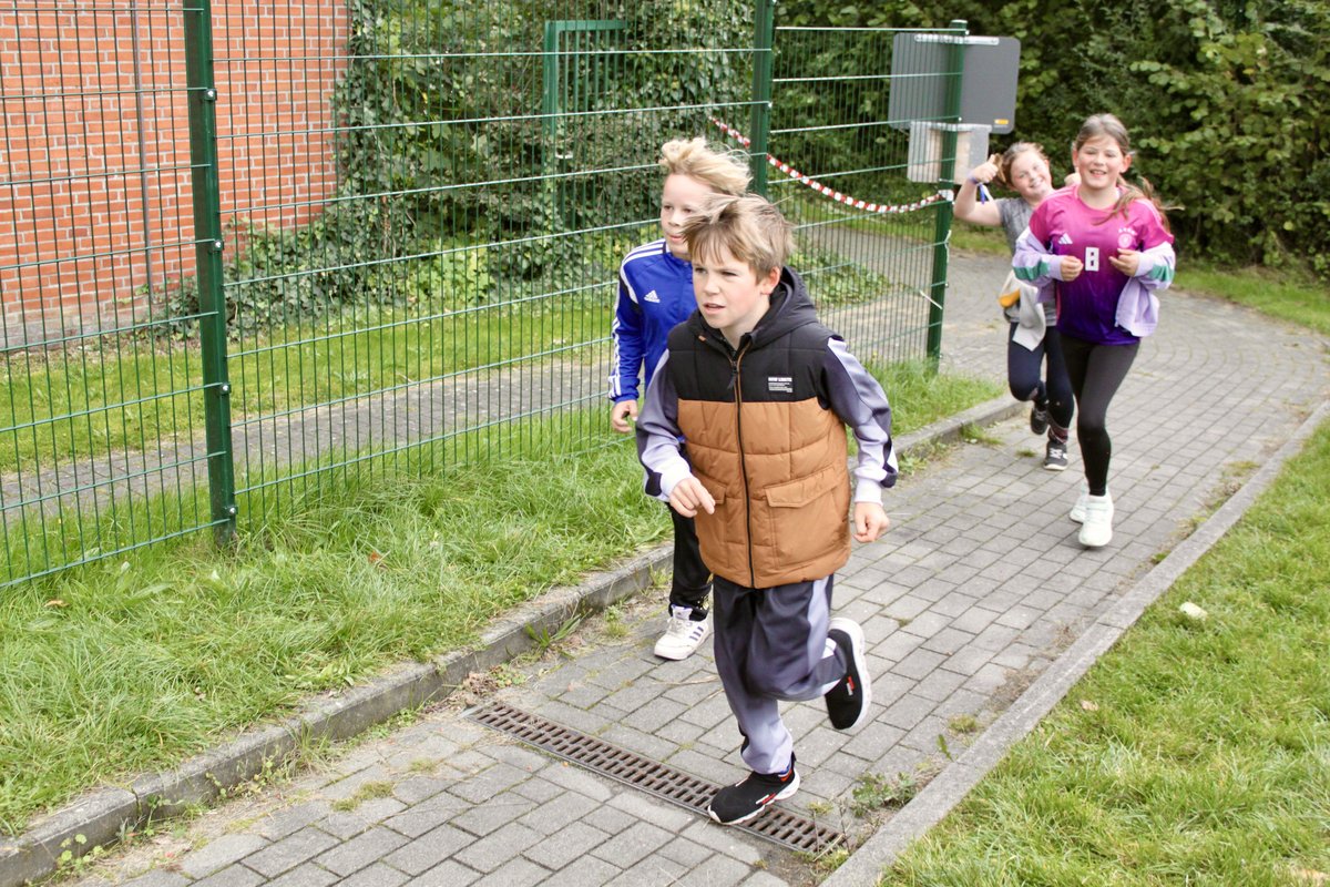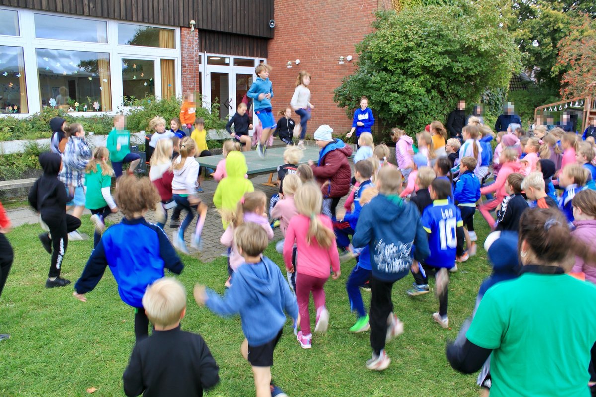 Heute ging es mal wieder besonders sportlich zu in der Grundschule Borgstedt: Der Lauftag stand an. Das Wetter meinte es gut mit uns, sodass die Kinder auf dem gesamten Außengelände ihre Runden drehen konnten. Besonderes Highlight war, dass - ausnahmsweise - auch im Schulgebäude gelaufen werden durfte, da ein kleiner Streckenabschnitt die Läufer an der Aula vorbei und wieder hinaus auf den Schulhof führte. Unterstützt wurden die Kinder von zahlreichen anfeuernden oder gar mitlaufenden Eltern und Großeltern.
