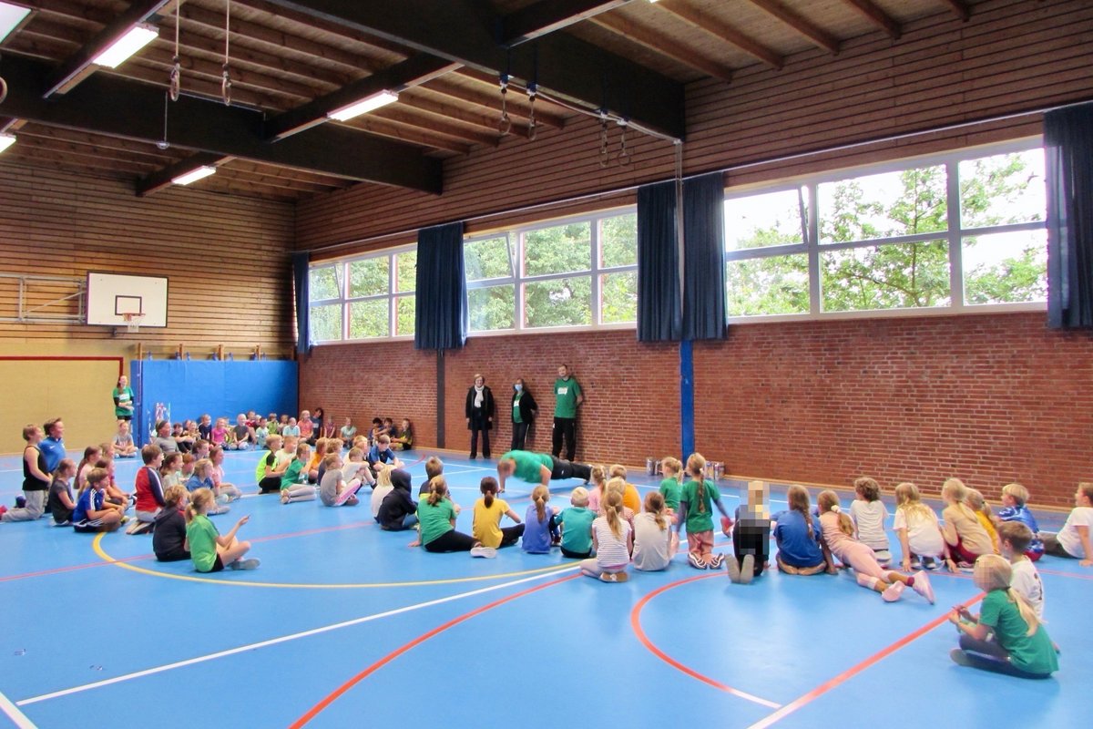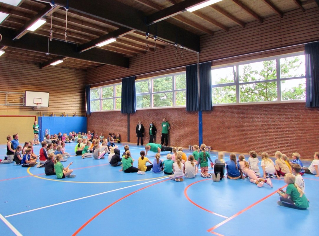 Gleich zu Wochenbeginn ging es mal wieder sehr sportlich bei uns zu: Wir haben am Aktionstag „Laufwunder“ der AOK teilgenommen. Ausgestattet mit unseren Laufwunder-Armbändern kamen wir ganz schön ins Schwitzen, als es galt, 60 Minuten durchzulaufen! Witterungsbedingt konnten wir zwar nicht wie geplant auf dem Schulgelände unsere Runden drehen, allerdings haben wir gezeigt, dass wir auch drinnen gar kein Problem damit haben, neue Rekorde aufzustellen. Zu Beginn gingen die Kinder eine Wette mit Herrn Jaekel ein: Er wettete, dass er mehr Liegestütze machen könne, als es Kinder schaffen würden, die 60 Minuten zu knacken. Als Wetteinsatz wurde ein Eis für alle Kinder eingeloggt. Nach der gemeinsamen Erwärmung durch die Erdmäuse in der Sporthalle ging es los: Klasse 1 und 2 machten das Schulgebäude unsicher (und durften dort ausnahmsweise laufen statt gehen) und Klasse 3 und 4 brachten den neuen Hallenboden ordentlich zum Vibrieren. Für kleine Energiekicks zwischendurch sorgten leckere Bananen, die der Edeka aus Büdelsdorf gesponsert hatte. Mit motivierender Musik sowie vielen anfeuernden und sogar mitlaufenden Eltern drehten am Ende noch 99 Kinder ihre Runden. Für die letzten zwei Minuten kamen auch die Laufenden aus dem Schulgebäude wieder in die Halle und reihten sich ein. Gemeinsam wurden die restlichen Sekunden gelaufen und der Jubel und Stolz war am Ende bei allen groß. Noch größer wurde die Freude allerdings, als Herr Jaekel seine Wette ganz knapp verlor und alle Kinder ihr verdientes Eis bekamen. Wir waren beeindruckt von allen gezeigten sportlichen und unterstützenden Leistungen - bei Groß und Klein, bei 5 und bei 60 Minuten!