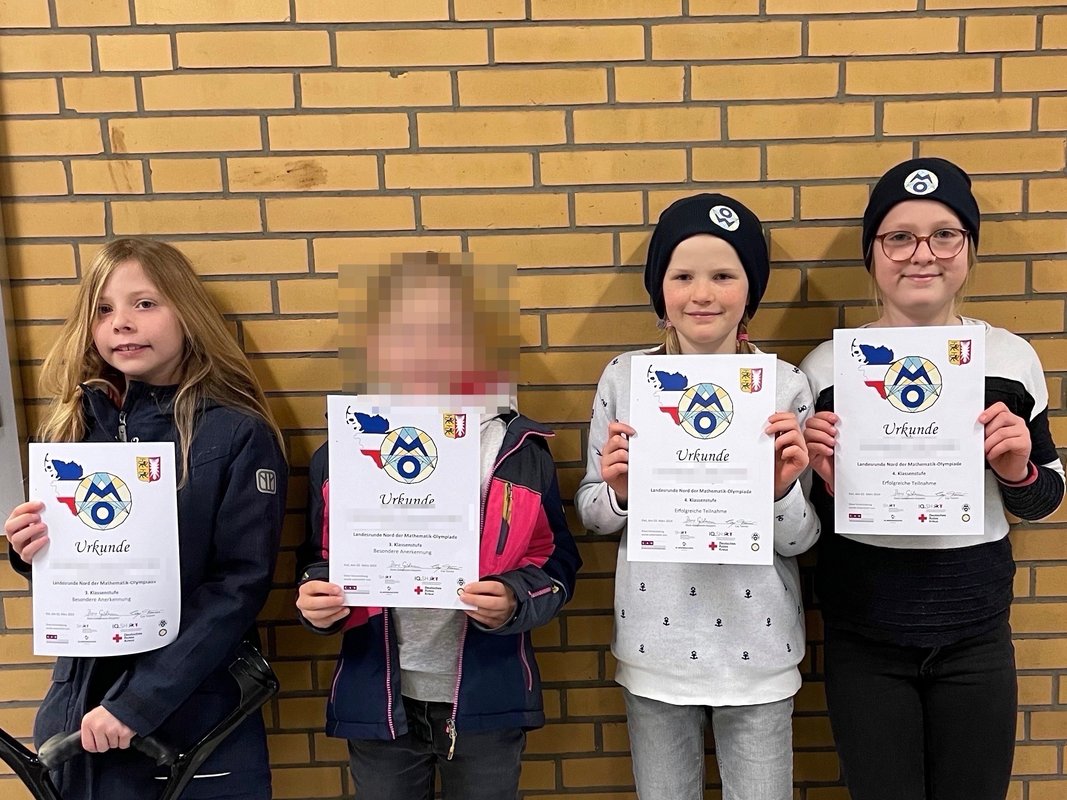 Alles begann mit der Schulrunde der Mathematik-Olympiade, an der sich je zwei Kinder unserer dritten und vierten Klasse für die Regionalrunde der Mathematik-Olympiade in Kiel qualifizierten.