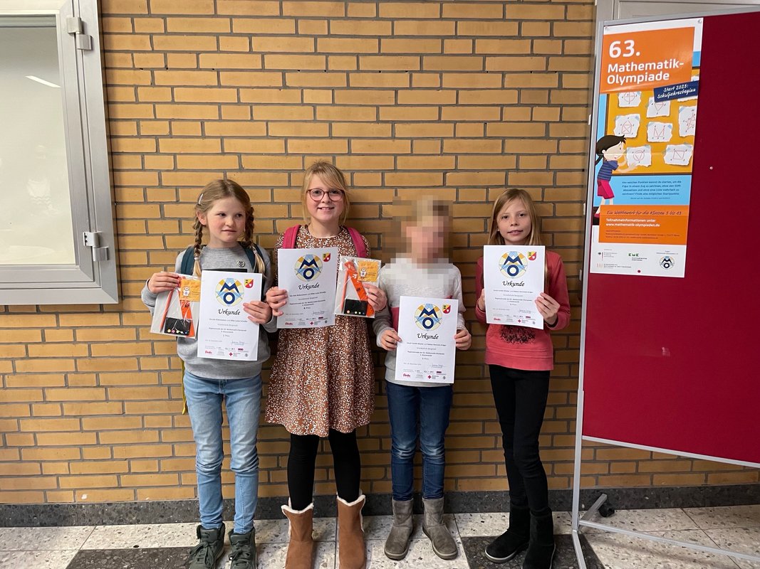 Am 18.11.2023 besuchten je zwei Kinder unserer dritten und vierten Klasse die Christian-Albrechts-Universität in Kiel, um an der Mathematik-Olympiade teilzunehmen. Die vier Kinder setzten sich in der Schulrunde, die bereits am 27.09.2023 in unserer Schule stattfand, gegen ihre 36 teilnehmenden Mitschülerinnen und Mitschüler durch.