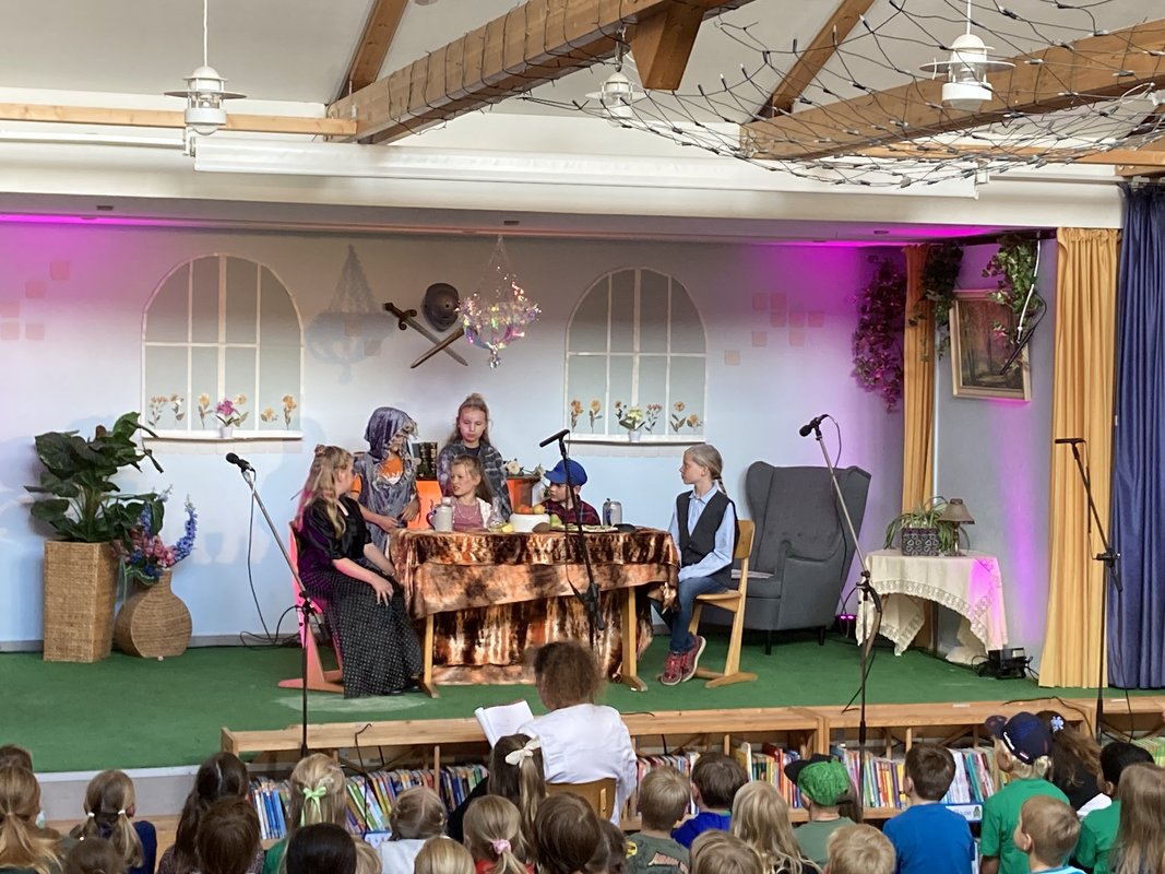 Den Auftakt machte der Chor der Grundschule Borgstedt. Nach einer kurzen Begrüßung gaben das Musik-Projekt und die Schulband ihre eingeübten Stücke zum Besten und rissen das Publikum mit. Im Anschluss traten die jungen Talente des Theater-Projekts auf – ein spukiges Spektakel, das mit einem tosenden Applaus gewürdigt wurde. Ab 16:00 Uhr wurden die restlichen Räume der Grundschule geöffnet und luden zum Stöbern und Staunen ein. Wer vorab noch den kleinen (oder großen ☺) Hunger stillen wollte, konnte sich am vielfältigen Kaffee- und Kuchenbuffet bedienen.